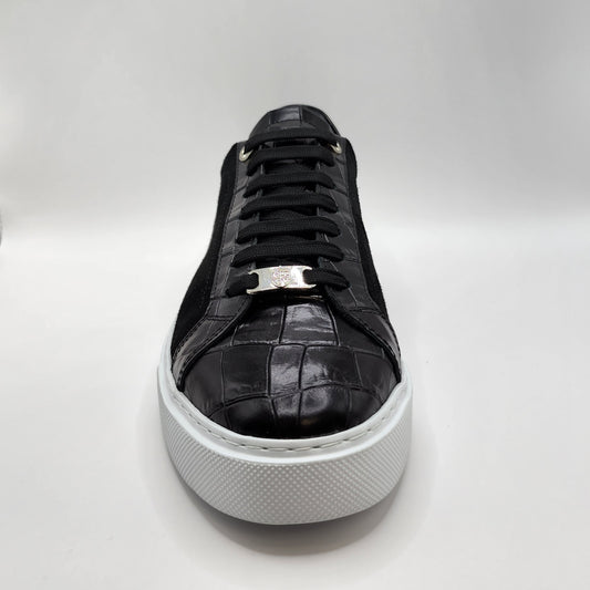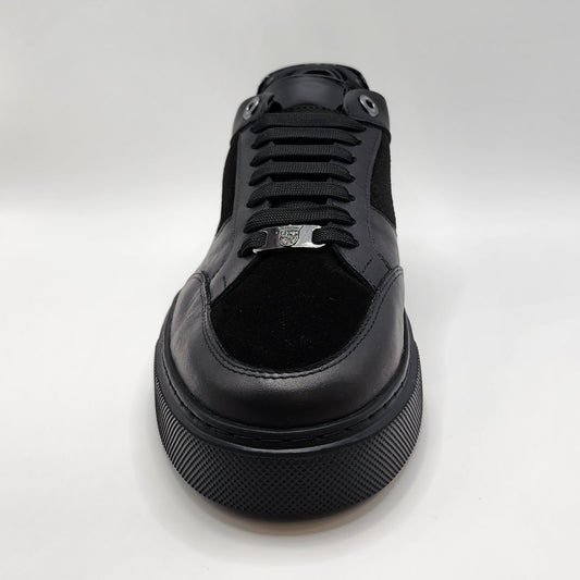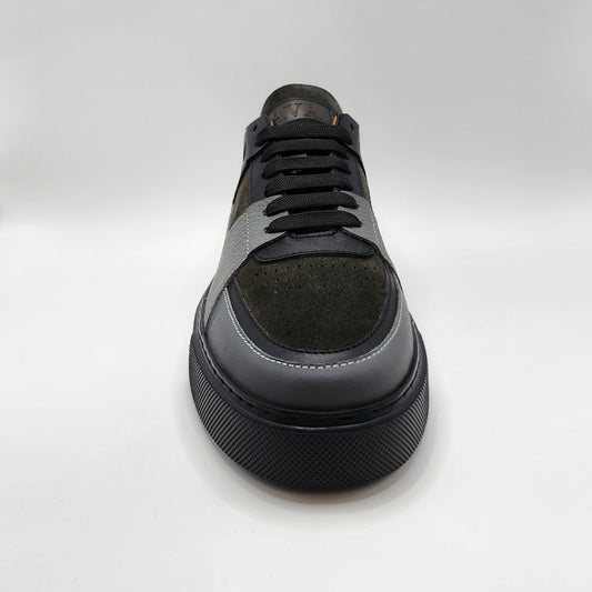 Black leather and suede sneakers