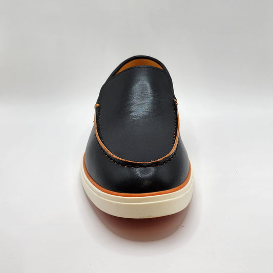 Black leather loafers with orange shade