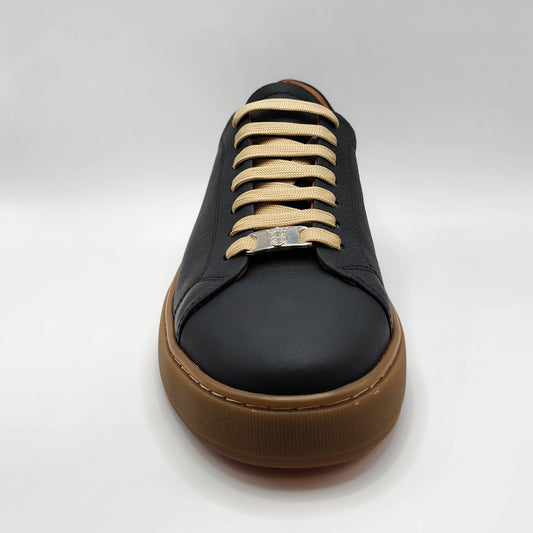Black leather with brown soles sneakers